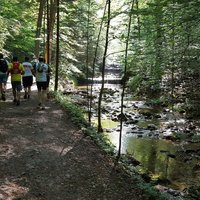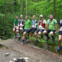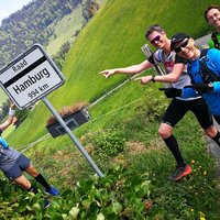 Schwarze Regenwolken türmten sich von allen Seiten her auf und zur Einstimmung wurden die 16 Runners auf ihrer Einlaufstrecke nach Egg gleich mal zünftig durchgeduscht.